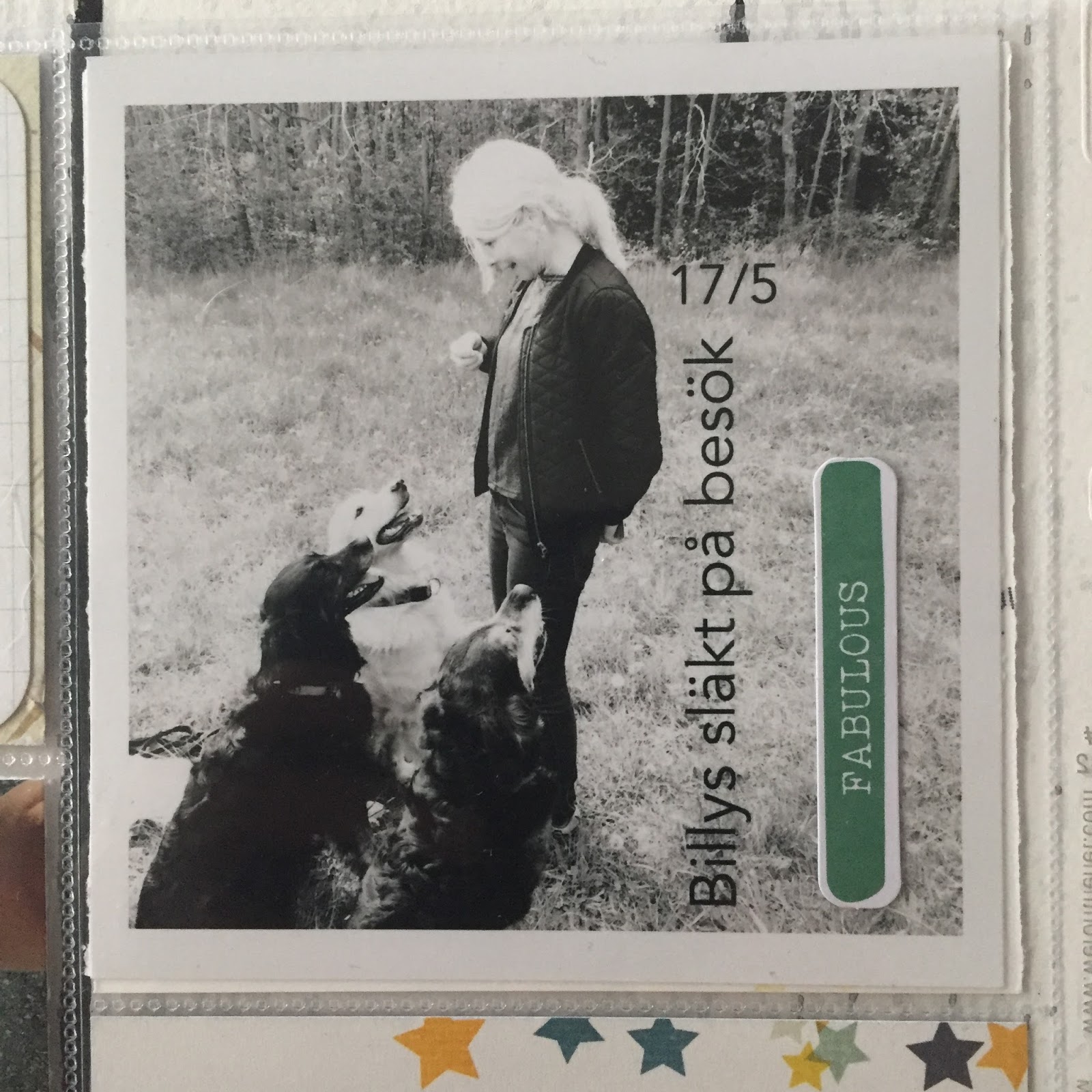 Marit hade med sig skrivmaskin och den lånade jag flitigt för att göra min ganska omfattande journaling. Annars hade jag sparsamt med pynt. Jag använde lite stickers och satte dit två röda bling-blommor som blivit över - för att upprepa lite röda detaljer.